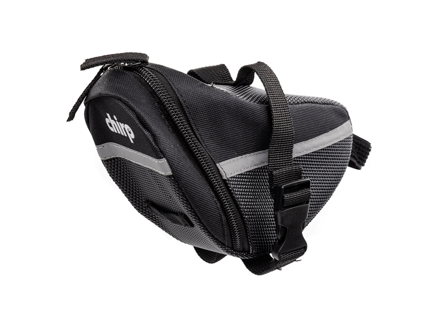 Dank der Befestigungsgurte sitzt die, aus robuster Kunstfaser gefertigte, Chirp Fahrradtasche an den meisten Sattelformen sicher. Innen ist eine kleine Netztasche abgesetzt und an der Außenseite sind reflektierende Elemente angebracht. Die Maße sind ca. 14 x 18 x 8 cm.