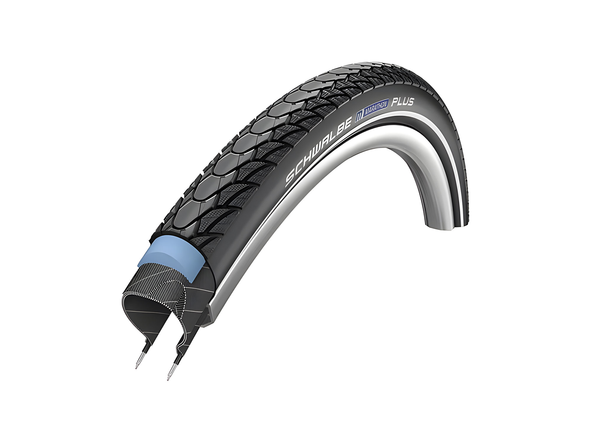 Schwalbes Marathon Plus überzeugt mit herausragenden Pannenschutz und exzellenter Haltbarkeit.
