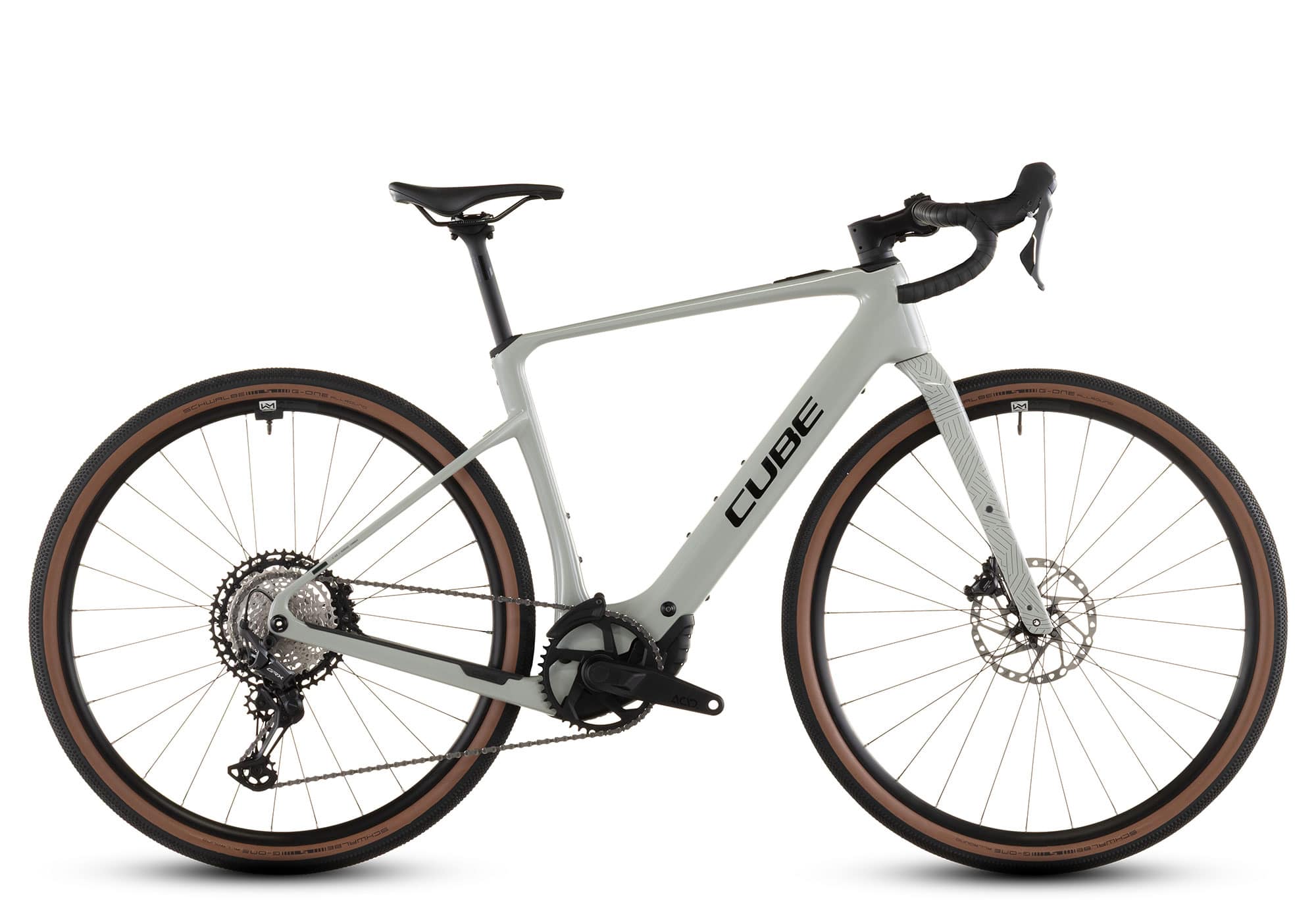 Der Rahmen aus hochwertigem C:62 Carbon wird mit einer Carbongabel kombiniert und bringt Leichtigkeit sowie Stabilität. Dank umfangreicher Befestigungsoptionen, ist diese Cube Gravel-E-Bike sowohl für Touren als auch für den täglichen Einsatz einfach aufrüstbar. Im Unterrohr sitzt der kompakte 400 Wh Akku, der sich bei Bedarf durch einen optionalen Range Extender um weitere 250 Wh ergänzen lässt. Der Bosch SX Motor mit bis zu 600 Watt Spitzenleistung sorgt für kraftvolle Unterstützung. Die Steuerung erfolgt dezent über den System Controller am Oberrohr und eine kleine Remote-Einheit am Lenker.